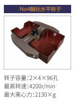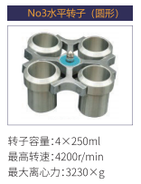 No3 | 水平轉(zhuǎn)子 | 4x250ml(圓形) | 4200r/min | 3230xg |