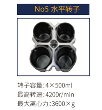 No5 | 水平轉子 | 4X 500ml | 4200 r/min | 3600xg |