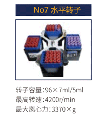 No7 | 水平轉子 | 96X7ml/5ml | 4200 r/min | 3370xg |