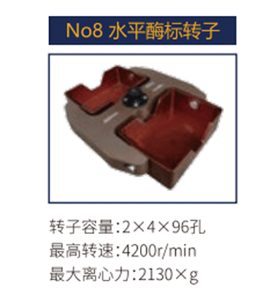 No8 | 水平轉子 | 2x4x96孔 | 4200 r/min | 2130xg |