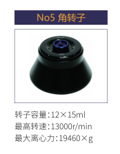 No5 | 角轉子 | 12x15ml | 13000r/min | 19460xg |